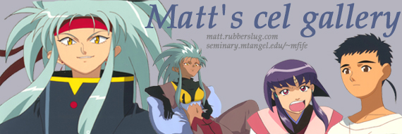 Welcome to my cel gallery. I've been a long fan of the series Tenchi Muyo. It's not a big collection, but I'd rather stick to quality rather than quantity.